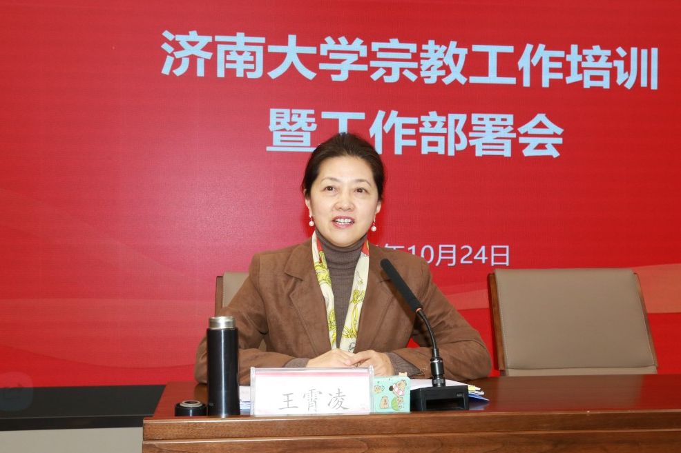 为深入学习贯彻习近平总书记关于宗教工作的重要论述和重要指示批示精神,全面提升学校宗教工作队伍能力水平,10月24日,学校在第五学术报告厅举办宗教工作培训暨部署会。省教育厅(省委教育工委)二级调研员王霄凌应邀作专题辅导报告,学校党委副书记商华出席,会议由党委常委、统战部部长徐庆国主持。