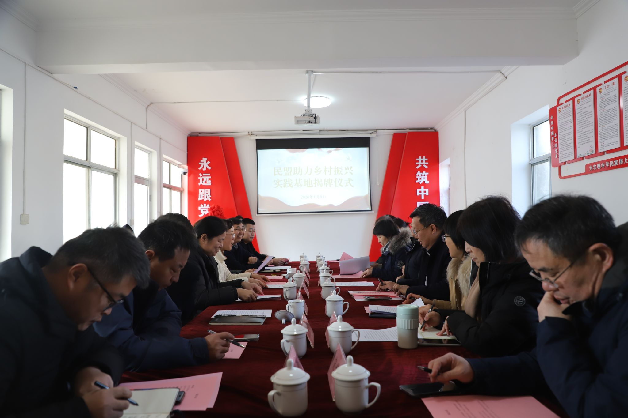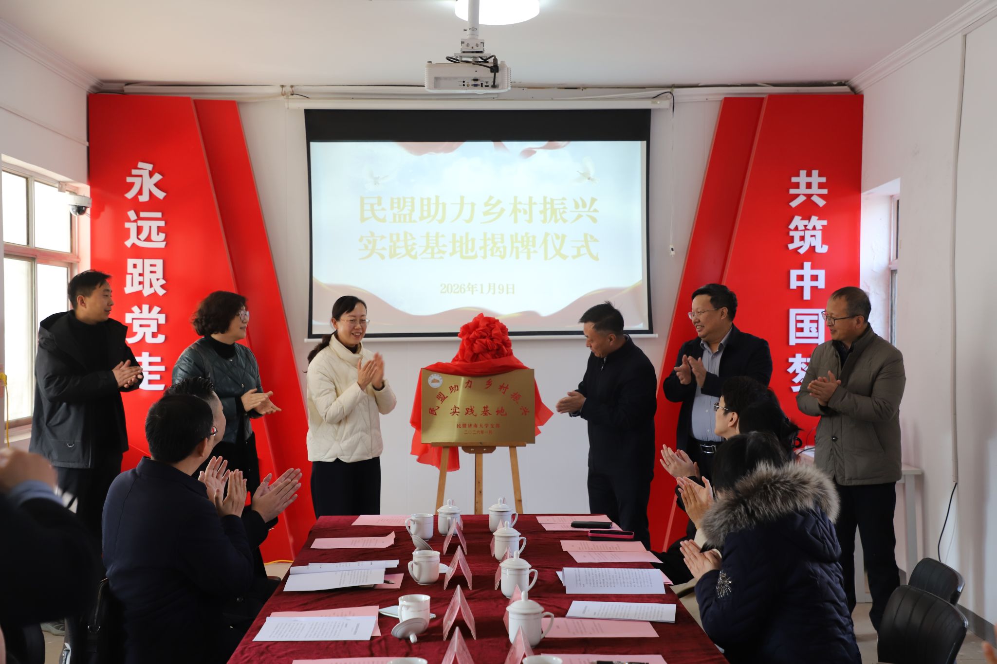1月9日,民盟济南大学支部“民盟助力乡村振兴实践基地”揭牌仪式在济南市市中区党家街道相家庄村举行。省人大常委会委员、民盟山东省委会专职副主委王睿,市中区委常委、宣传部部长、统战部部长张源,区人大常委会副主任、民盟市中区基层委员会主委苗萌,济南大学党委常委、统战部部长徐庆国,党家街道党工委书记亓荣永,民盟济南大学支部主委孙红卫以及民盟济南大学支部成员参加活动,共同为实践基地揭牌。